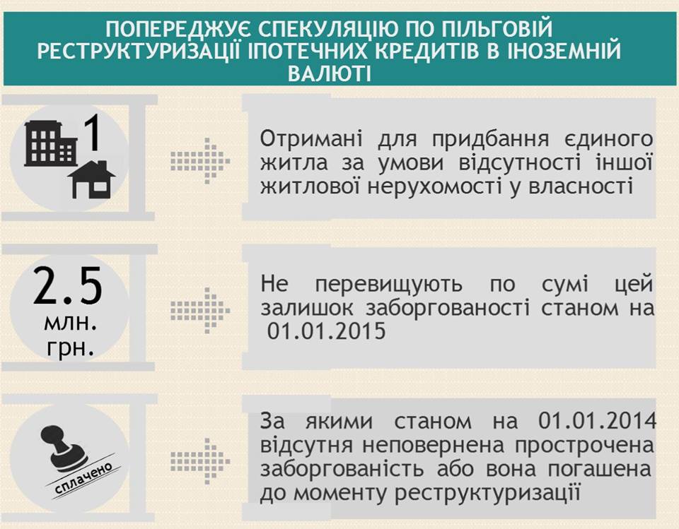— обов’язок банків здійснити реструктуризацію валютних кредитів на придбання єдиного житла