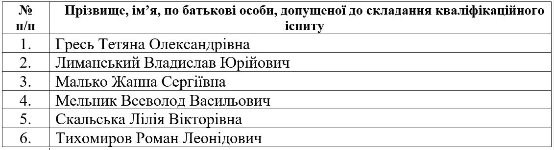 До іспитів допущені такі особи: