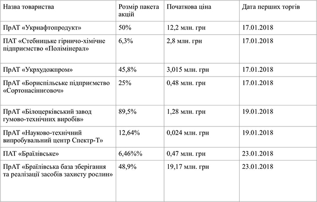 На аукціон виставлять від 6% до 90% держпакетів акцій.